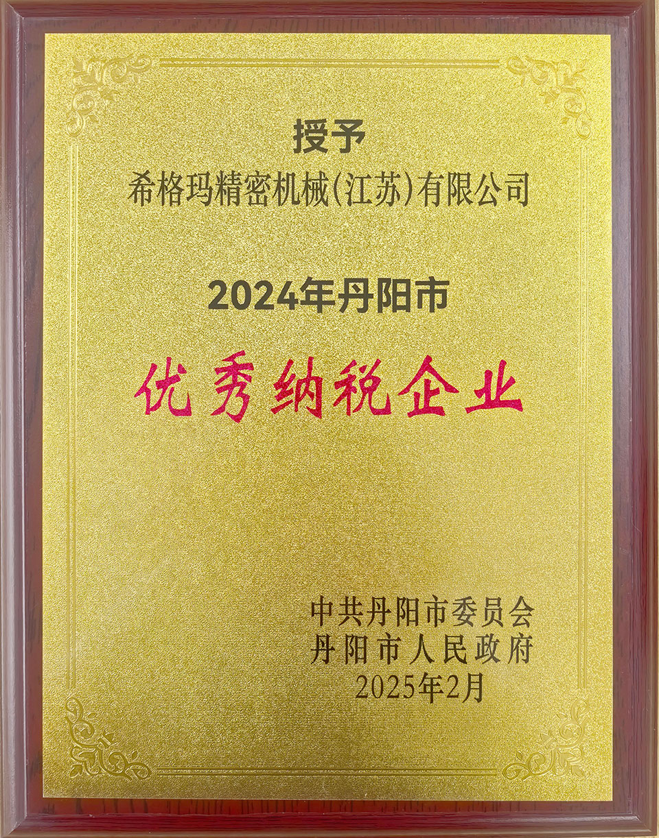 希格瑪精密機(jī)械(江蘇)有限公司2024年被授予優(yōu)秀納稅企業(yè)稱(chēng)號(hào)