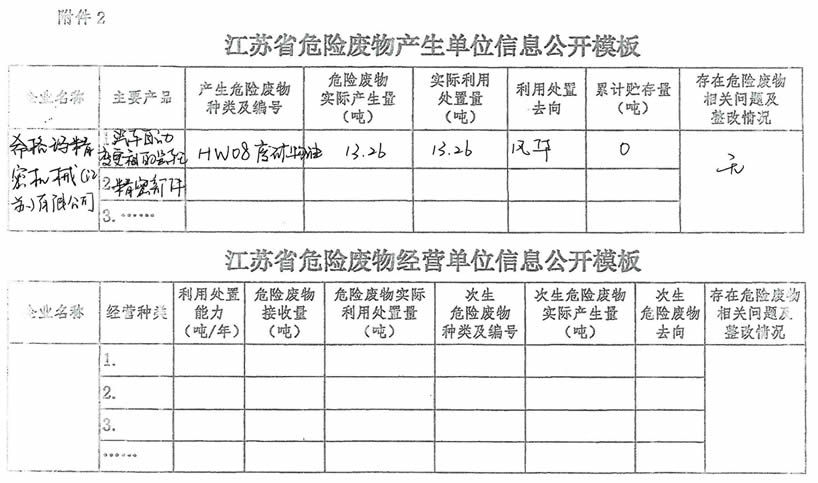關(guān)于江蘇省危險(xiǎn)廢物產(chǎn)生單位的信息公示