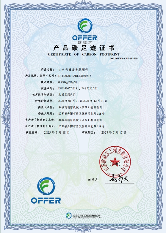 產(chǎn)品碳足跡證書(shū)-希格瑪-安全氣囊發(fā)生器組件